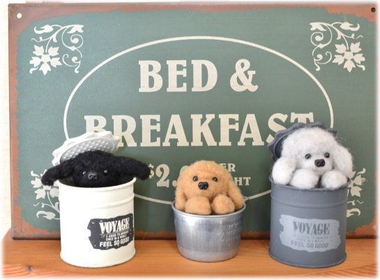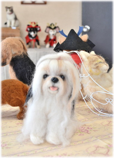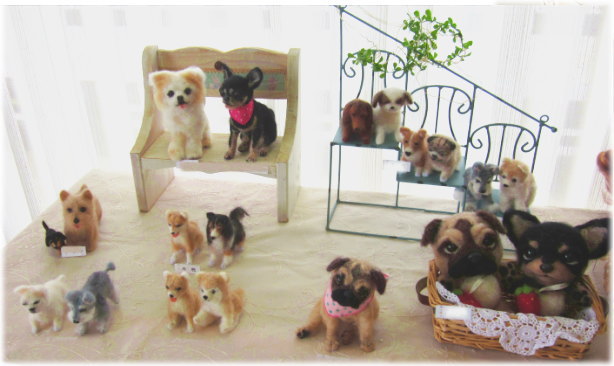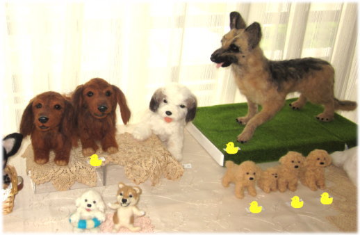 | 大きなわんこ達は ご家族達ですね。 愛情たっぷりに作られています♪ 表情やポーズも 作者さんのこだわりを感じますね |
