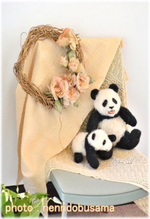 大きなパンダ+ちびぱんだ ももんが リス うさぎ フクロウなど鳥たちも一緒です。 |