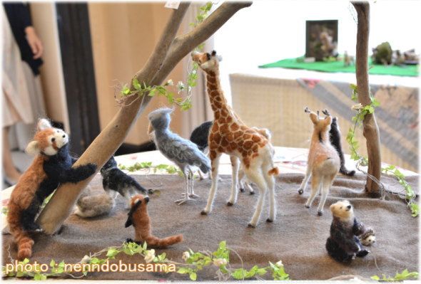 可愛い女の子たち。 仲良しのきりんやしろくま レッサー親子 ユニークなひつじにわんこ ウォレスなど みんな表情豊かで 見てる人が笑顔になっちゃう。 丸い柴+パンダは 羊毛のガマ口です。 |