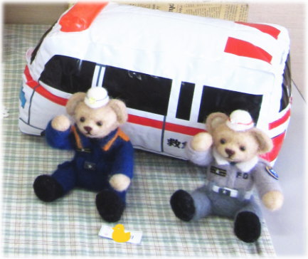 消防隊のベア。 この子たちはお世話になったお礼にと その時の救急隊のコスチュームで 作られて、プレゼントされたもの。 4体も作られて、 今回は展示の為に 貸し出して下さったとのことです。 ♡ 素敵なエピソードに心が温まります。 |