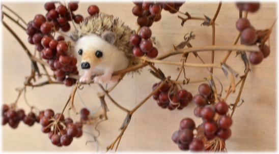 合同展示②の ハリネズミの森です。 この森には 指まで細かく再現されたハリちゃんが 29匹 ふわっとした子+2cmのちび子 4匹 合計33匹が幅230cmの展示の中に 隠れています♪ |