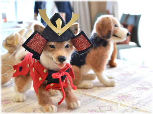 生徒さんのご希望で作った 甲冑シリーズ。 の見本 生徒さんはついには 本物のしばわんこにまで 作って着せていました! 考えた甲斐ありです(嬉) |