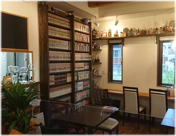 10代より愛読してきたマンガや、趣味のコレクションフィギュアを並べ 反対側には、手作り羊毛フェルトの動物たちが お客様をお出迎えしています。 憩いのスペースを作りたい。 そんな夫婦の願いがかたちになりました。 たった12席の小さな喫茶店です。 ![]() |