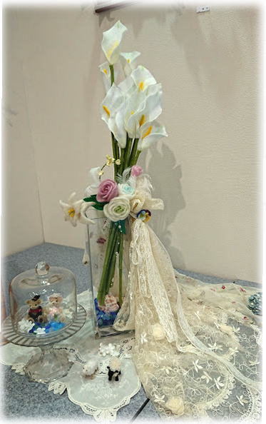 左 お嬢さんご結婚の際に作られた、 ゆりのリングピローです。 お母様の愛情が感じられます♡ |
