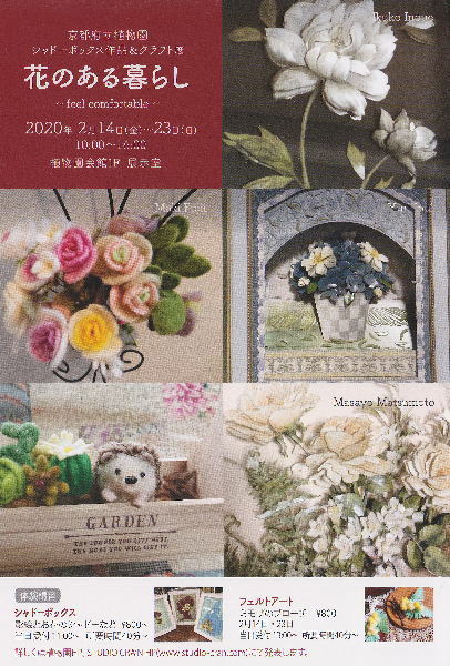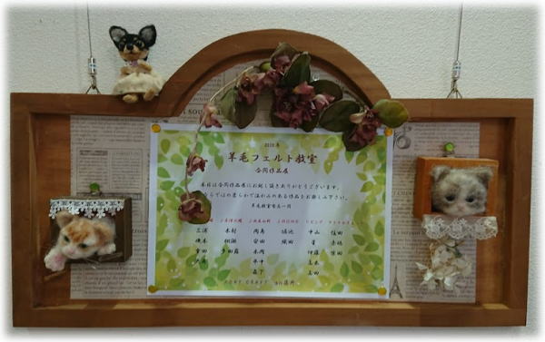 今回の展示会は、植物園ということで お花にかかわる展示というテーマが決まっていました。 今回参加してくださった皆さんには 合同作品のためのバラと 作品に添えるお花を頑張って作っていただきました! お陰で素敵な展示が出来、たくさんの方に喜んでいただけました。 改めて、ありがとうございます そしてお疲れさまでした(*^^*) こちらが、羊毛スペース全景です。 ![]() ご一緒させていただいた素敵なシャドーボックスの展示の様子 STUDIO CRAN(澤村先生のHP) |