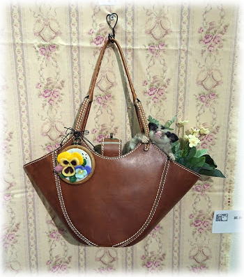 | 右 バッグの中から 様子を伺う、フクロモモンガ。 パンジーとビオラの 小さなオーナメント。 |