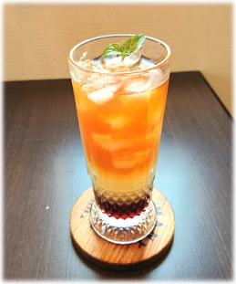 ¥600 | アイストリプルティー グレープフルーツジュースと ザクロ、紅茶の3色が鮮やか |