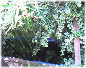 めだか池のすだれの代わりに 今年からアイビーを茂らせたよ。 |