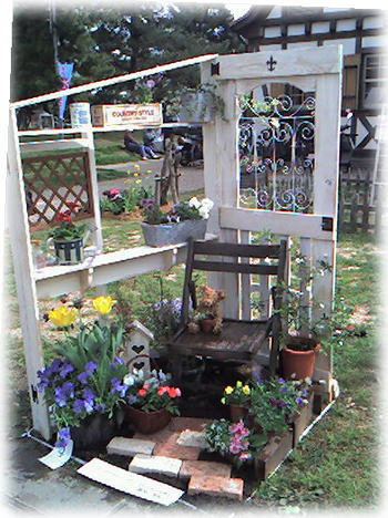 | ミニガーデンコンテスト用のフェンス ワイヤーで作った飾り。 |