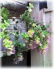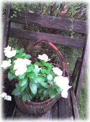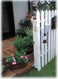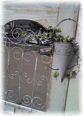 白い日々草が かごからあふれて、 後ろのバラが押されて ・・・すっかり隠れてます。 大丈夫かな? |