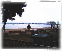 琵琶湖を眺めながらの カフェテラスもいいお天気なら とっても素敵なんだけど・・ 今日は曇りなのでちょっと・・ね。 |