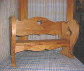 ドール・チェアー size 33cm×20cm×21cm カントリー雑誌で見かけたハートのチェアーを 自分なりにアレンジして作りました。 側面がハートの形です♪ 背もたれの下のデザインのためカットした物を 座面のしたの飾りに使いました。 |