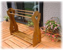傘立て size 50cm×24cm×25cm 正面にはパイン材に 厚さ5oの薄い板を カットして作ったメイプルリーフをペイントして 張り付けたので 存在感のあるカナダの国旗に なりました。 側面の部分には 水に強い 桧の板を使用しています。 底には 薄いレンガを敷き詰めて 重心をしっかりさせました。 |